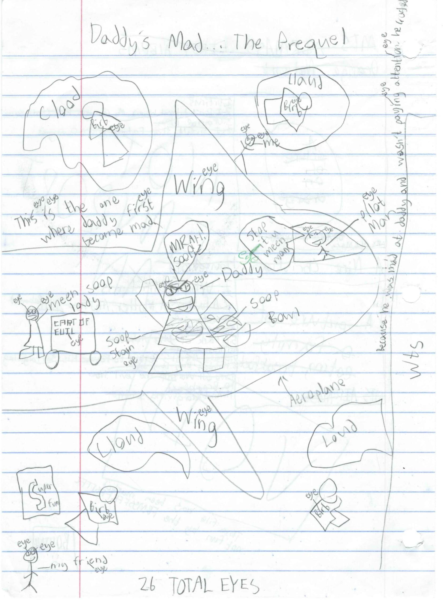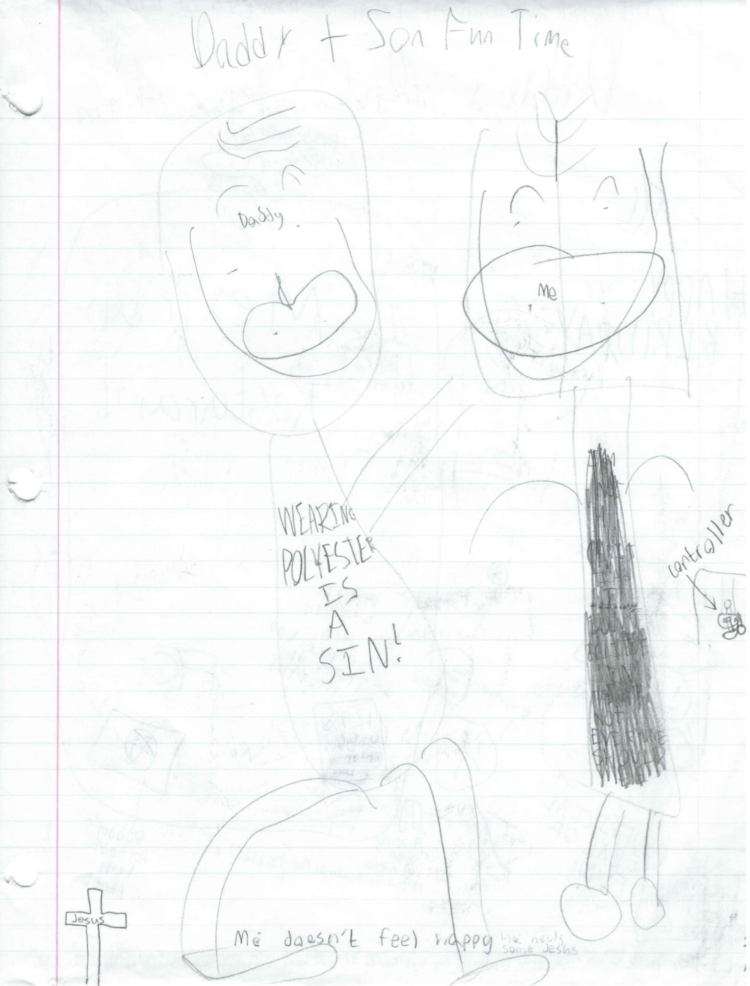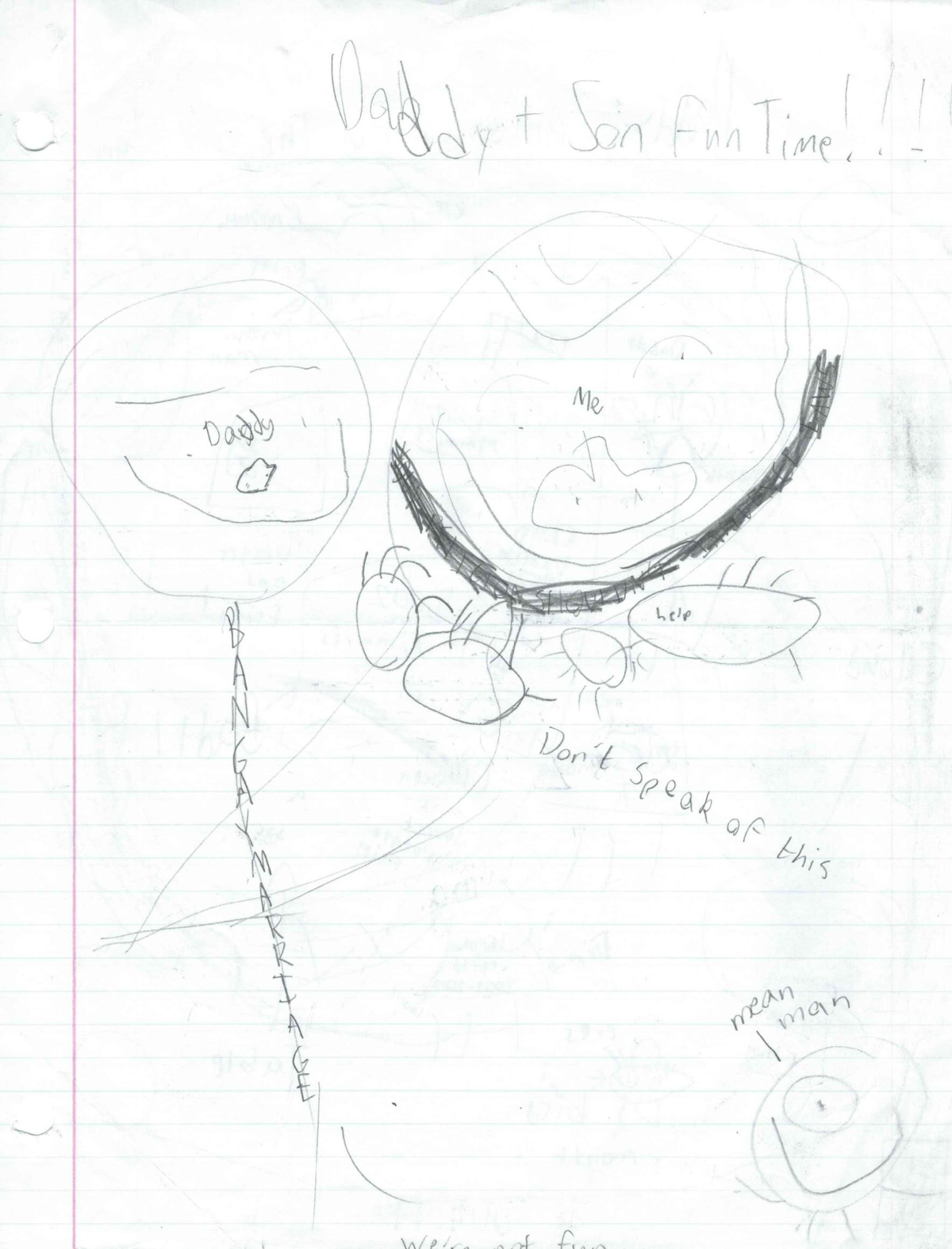 Secret message on that last one that couldn't be captured cause the page was slightly too big for my printer. It says along the right side, "I KNOW WHAT YOUR DAD DID TO YOU. DON'T FORGIVE HIM. KILL HIM. MUTILATE HIS FLABBY FLESH AND SUCK THE LIFE OUT OF HIM WHI". Kinda disappointed I have to reveal this secret message, cause finding these secret messages are a big part of the story behind Daddy's Mad. I guess I'll take this moment to tell you to look for these secrets!