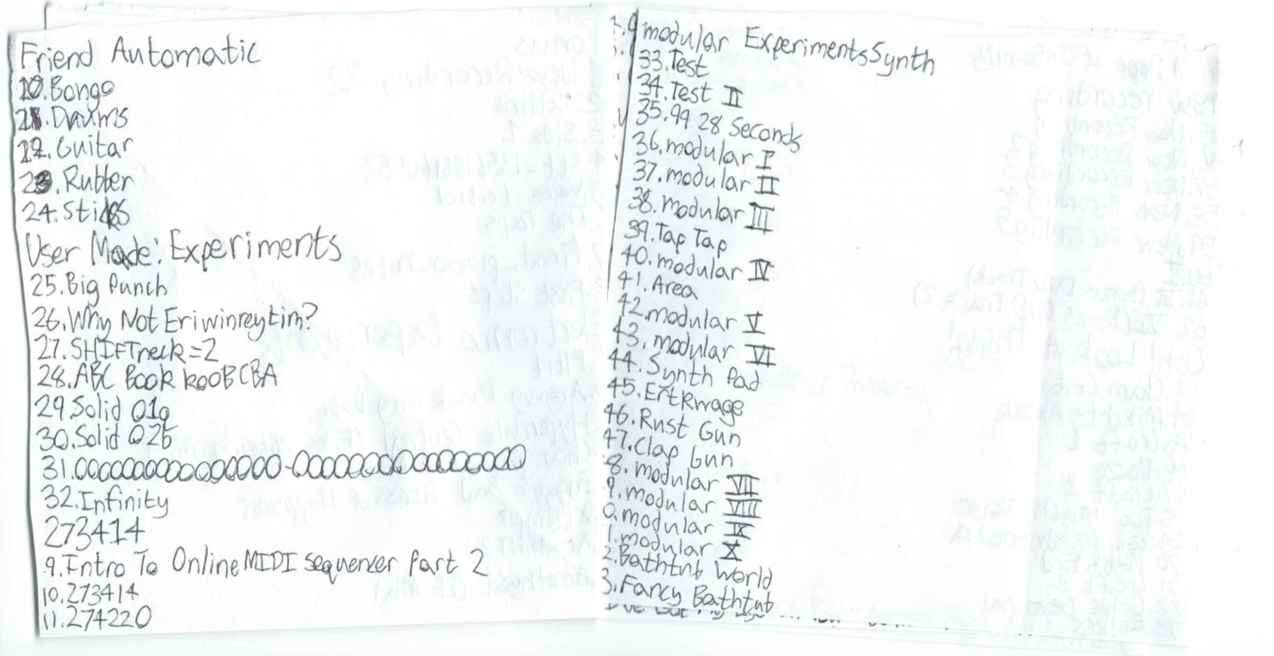 Album 5 out of 12: modular ExperimentsSynth: This one isn't bad, I put it on my Bandcamp for crap's sake. Download Here. 1. Test - 0:07